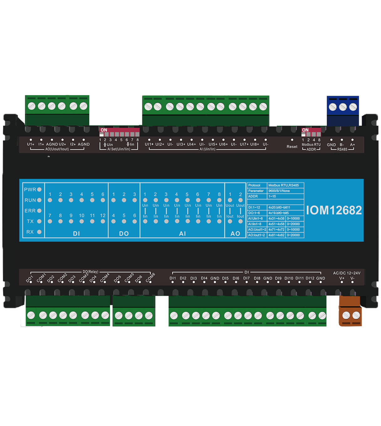 本产品采用主流的ARM 32位微处理器,支持Modbus RTU协议。既可以作为DDC、PLC等控制器的I/O模块,也可以单独使用。