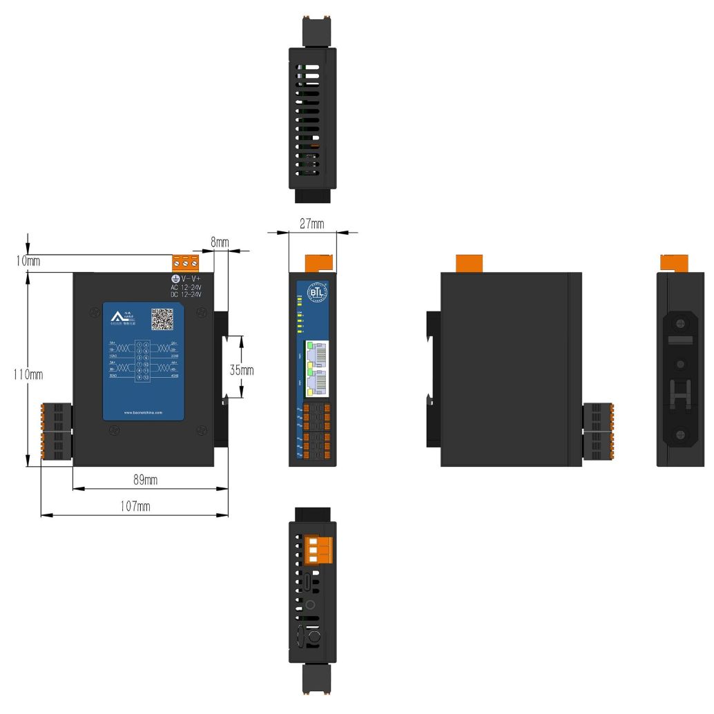 接口:2个网口,4个RS485接口 温度:-20~70℃(工作) -40~85℃(储运)