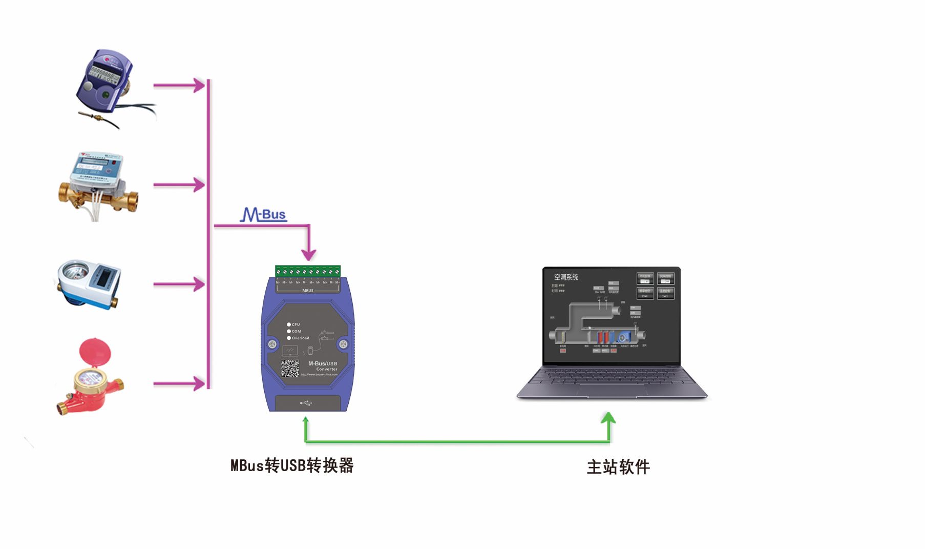 产品概述 迅饶MBus转USB转换器通过MBus接口接入热量表、水表等终端仪表的MBus总线,另一端直接输出USB信号,可无缝对接电脑或带USB接口的网关,实现对终端仪表的快速访问、数据读取与参数调试。产品全面兼容国产CJ188标准与欧洲EN1434标准,满足不同地区、不同类型仪表的接入需求,为现场工程师提供高效、稳定的调试解决方案。